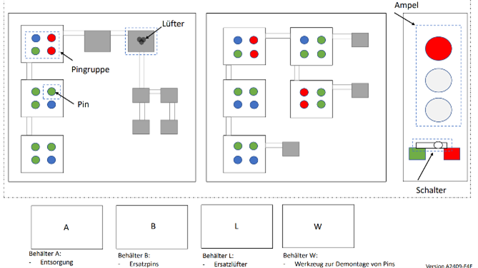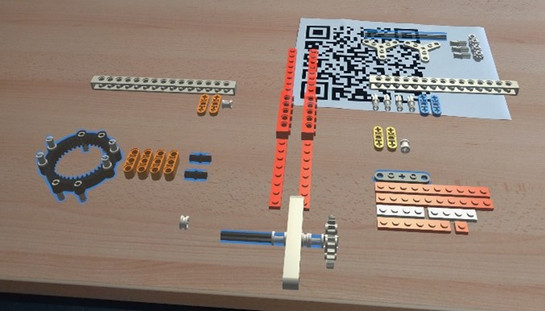 In diesen Einsatzszenario wurden die AR-Brillen HoloLens 2 eingesetzt, um aus verschiedenen Lego-Teilen ein Planetengetriebe a) zusammenzubauen oder b) auseinanderzusetzen. Eine Schritt für Schritt-Anleitung wird über virtuelle 3D Objekte eingeblendet, sodass der Nutzer in Echtzeit die reelle Montage oder Demontage durchführen kann.